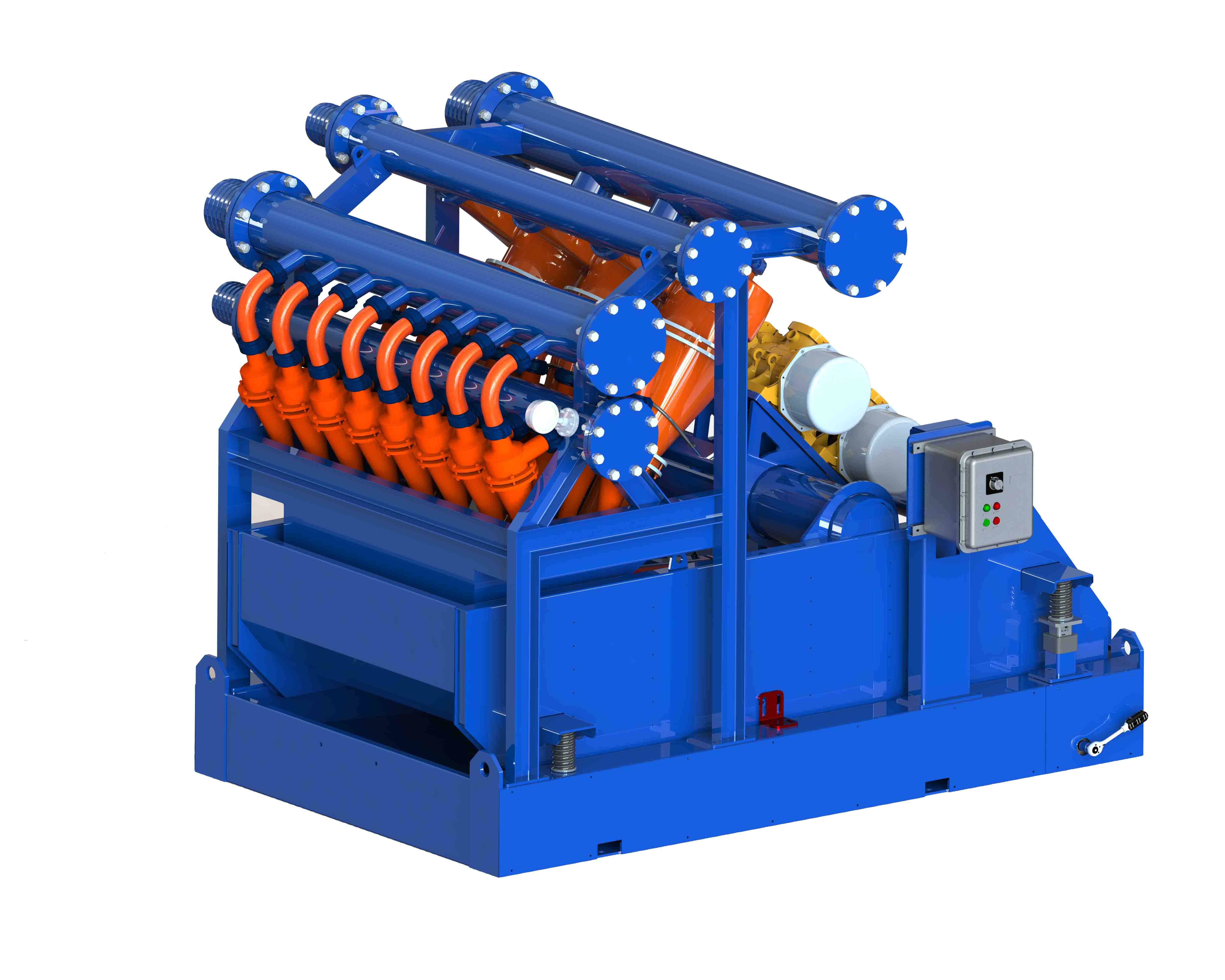 Ситогидроциклоная Установка Ситогидроциклонная установка- Это значит пескоотделитель, илоотделитель и вибросито установляются в одном компанктном комплекте .Эта установка идеально выбрана для контроля твердых частиц второй и третьей фазы совместно в системе обработки буровых растворо. Имеет преимущества как компактной структуры, меньшего пространства,и высокой производительности. Технические Параметры Модель BZQJ583-1S8N BZQJ583-2S12N BZQJ583-3S16N BZQJ584-2S12N BZQJ584-3S16N Производительность 120m³/h 240m³/h 360m³/h 280m³/h 390m³/h Размер пескоотделителя 10″ Кол-во пескоотделителей 1шт 2 шт 3шт 2шт 3шт Размер илоотделителя 4″ Кол-во илоотлелителей 8шт 12 шт 16 шт 12шт 16шт Рабочее давление 0.25~0.4MPa Удаление частиц 15μm~45μm Модель вибросита BZS583 BZS584 Взрыв. исполнение ExdIIBt4/IECEX/A-TEX Вес 2010kg 2285kg 2380kg 2260kg 2392kg Габариты 2425×1978×2147mm 2425×1978×2147mm 2425×1978×2147mm 3004×1978×2147mm 3004×1978×2147mm Основнвые Преимущества 1. Материал циклона изготовлен из чугуна с высоким содержанием хрома или 100% чистого полиуретана с более длительным сроком службы; 2. Сильная способность разделения, широкий диапазон разделения, может удалить твердые частицы от 15 μm до 75 μm; 3. Выход циклона имеет конструкцию форсунки, частицы выбрасываются быстро, что снижает вероятность засорения; 4. Длительный срок службы, легкий вес, простота обслуживания, компактный дизайн; 5. Вибромотор: Итальяский OLI или Американский Martin; 6. Электрические компоненты> ,Siemens, Schneider или ABB.