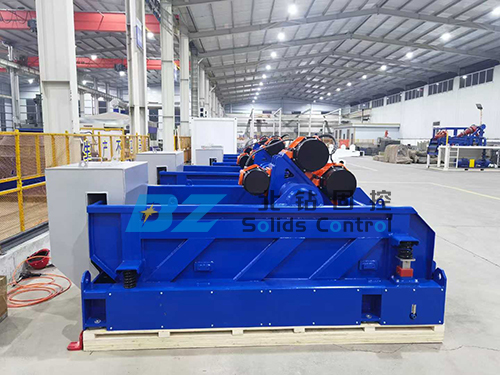 4 sets of BZ Dual-motion Drilling Fluid Shale Shaker have been sent to overseas Recently, 4 sets of the dual-motion drilling fluid shale shaker manufactured by BZ Solids Control have been sent to abroad customer after strict production, assembly, quality inspection and trial commissioning. The shale shaker plays a vital role in the fields of mud purification and treatment such as oil drilling, coalbed methane drilling and river dredging, etc. Dual-motion shale shaker usually adopts three vibrating motors. By adjusting the phase angle and rotating speed of the motors, make the screen basket has two kinds of running trajectories: linear motion and balanced elliptical motion. When running in linear motion, the vibration intensity is large, which can produce strong impact force and make the materials move quickly on the screen surface, thus realizing large handling capacity and high conveying speed; in the balanced elliptical motion, the movement trajectory of materials on the screen surface is more complicated and the residence time is relatively longer, which is helpful to improve the recovery rate of drilling fluid, make the solid phase drier, reduce the possibility of screen clogging and prolong the service life of the screen. When the drilling fluid returns from the bottom of drilling well and enters the shale shaker, the screen basket moves in double motion under the action of the vibrating motor. Solid particles larger than the screen hole are retained on the screen, and are transported along the screen surface to discharge end while vibrating and discharged; The solid phase smaller than the screen hole and drilling fluid leak into the mud tank, realized liquid-solid separation. Main characteristics of dual motion shale shaker: Efficient separation: dual motion shale shaker can make full use of the advantages of two different vibration tracks to realize efficient separation of solid particles in drilling fluid. Strong adaptability: vibration trajectory and exciting force can be adjusted according to actual working conditions to adapt to different drilling fluid properties and separation requirements. Compact structure: rational design, compact structure, small footprint and easy installation and maintenance. Strong durability: high-quality materials and advanced manufacturing technology are adopted to ensure the long-term stable operation of the equipment in harsh environment. BZ Solids Control is a professional manufacturer of intelligent solids control equipment&system, oil sludge treatment system, drilling waste treatment system and HDD mud recovery system, integrating scientific and technological innovation and research, manufacturing and processing, global marketing, technical service and technical consultation. Welcome new and old customers to BZ Solids Control to discuss cooperation, and we will serve you wholeheartedly.